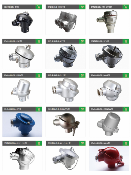 广发应用于装配热电偶、热电阻中,内装接线板或变送器,符合防水,防尘要求。一般用铝合金材料压铸,根据使用场合也有使用防腐蚀的材料,如胶木等。